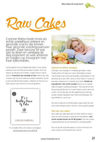 In de winteruitgave van het Miss Natural Magazine staat een item over Healthy Piece of Cake met één van mijn recepten.