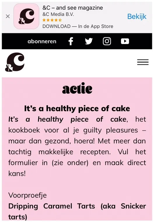 Chantal geeft drie keer mijn boek: ‘It’s a Healthy Piece Of Cake’ weg!!